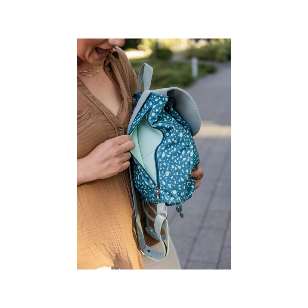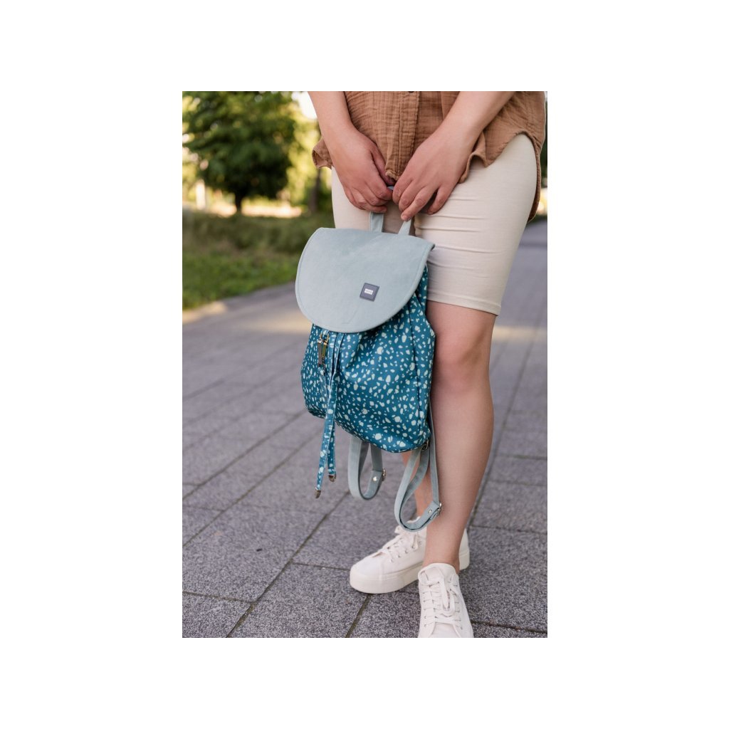 Batoh z eko semiše a odolné ekokůže. Uvnitř je silná bavlněná podšívka, a kapsičky pro snadné řešení ukládání věcí. Maximální zátěž je 4 kila. Zapínání batohu je na karabinu.