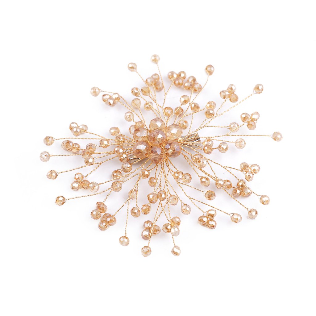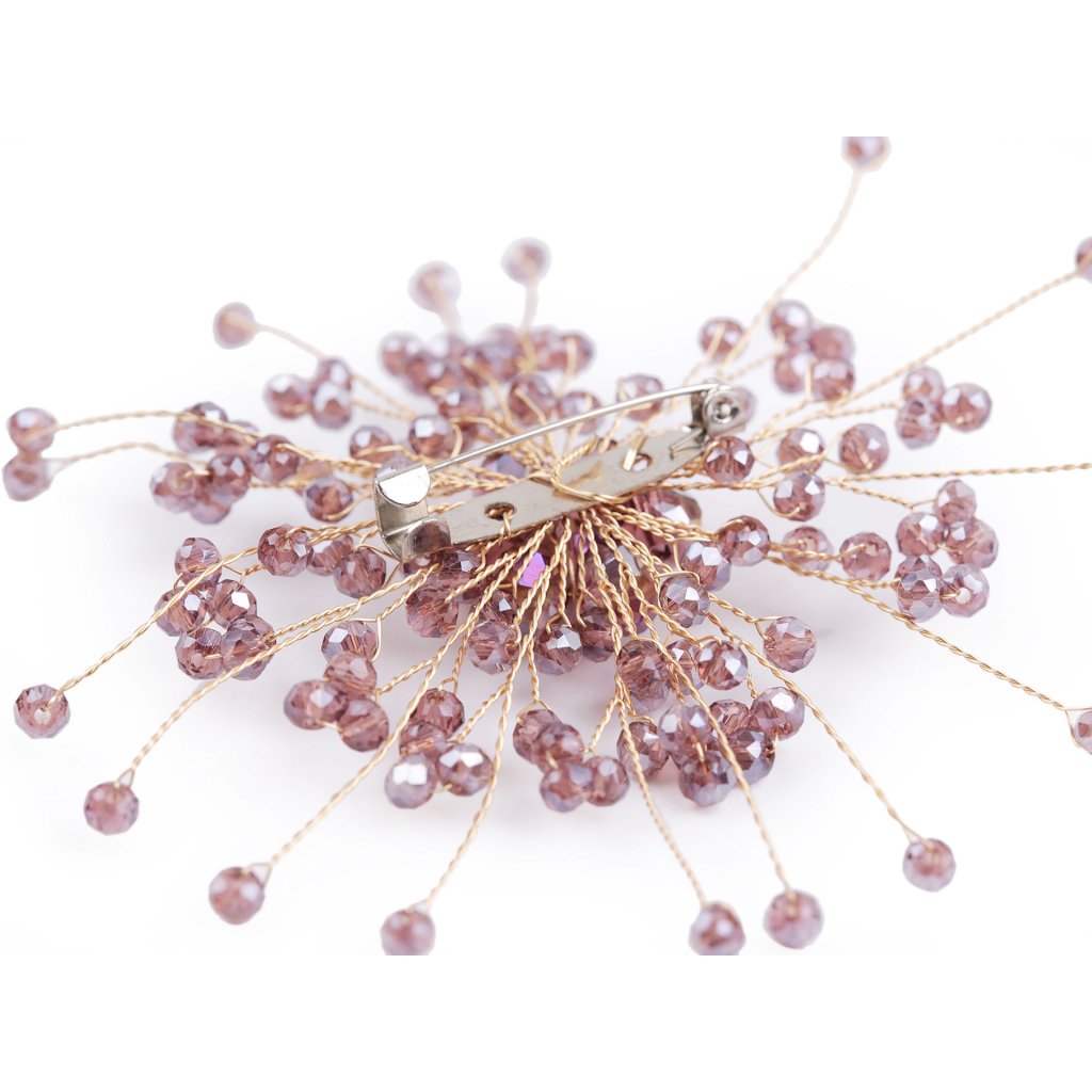 Elegantní brož s broušenými korálky je naprosto úchvatná. Navozuje dojem rozevlátého střapatého květu či sněhové vločky. Díky drátkům ji můžete libovolně tvarovat. Můžete ji nosit na oděvech, kloboucích, kabelkách či s ní můžete sepnout šátek. Na zadní straně má brožový špendlík.