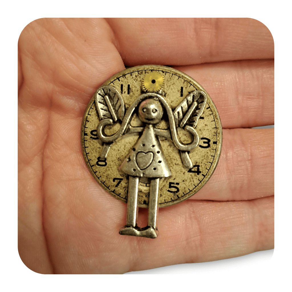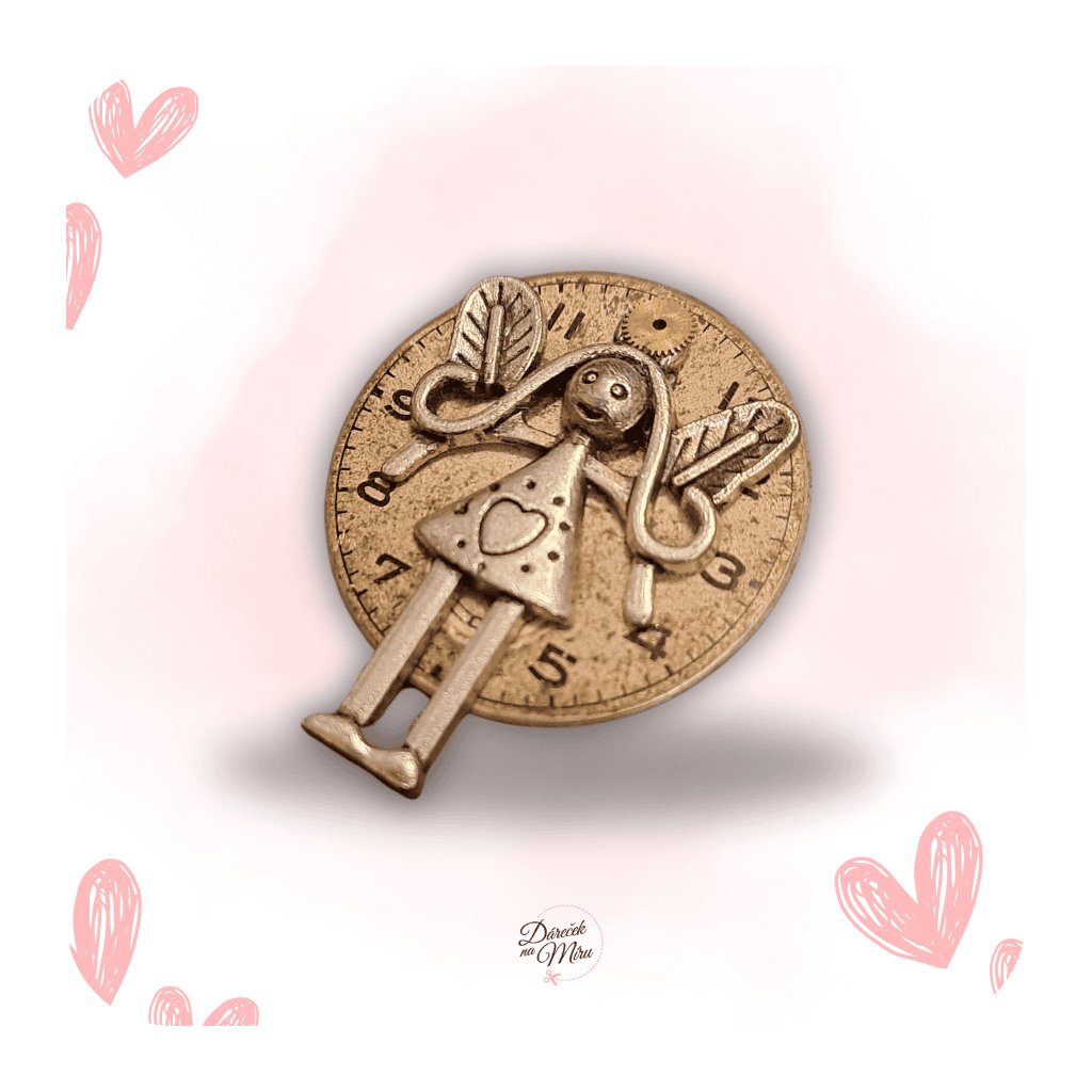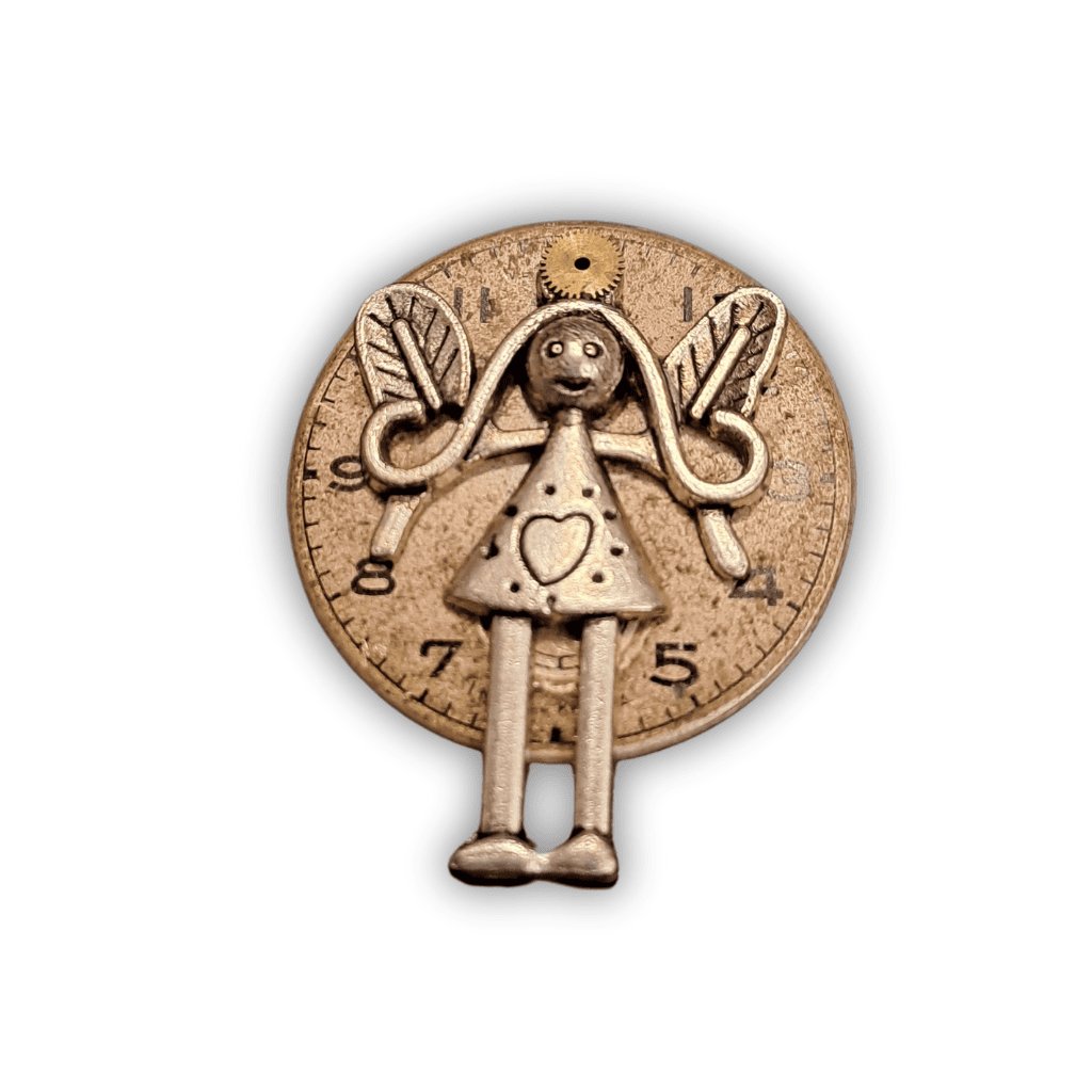 Peckovní brož s motivem anděla, vyrobená v designové dílně PUPO DESIGN, je unikátním doplňkem, který zaujme svou originalitou a precizním zpracováním. Tento šperk je vytvořen ve stylu steampunk.