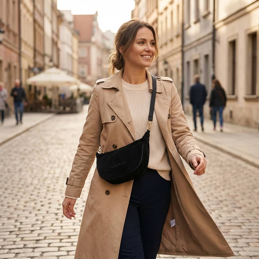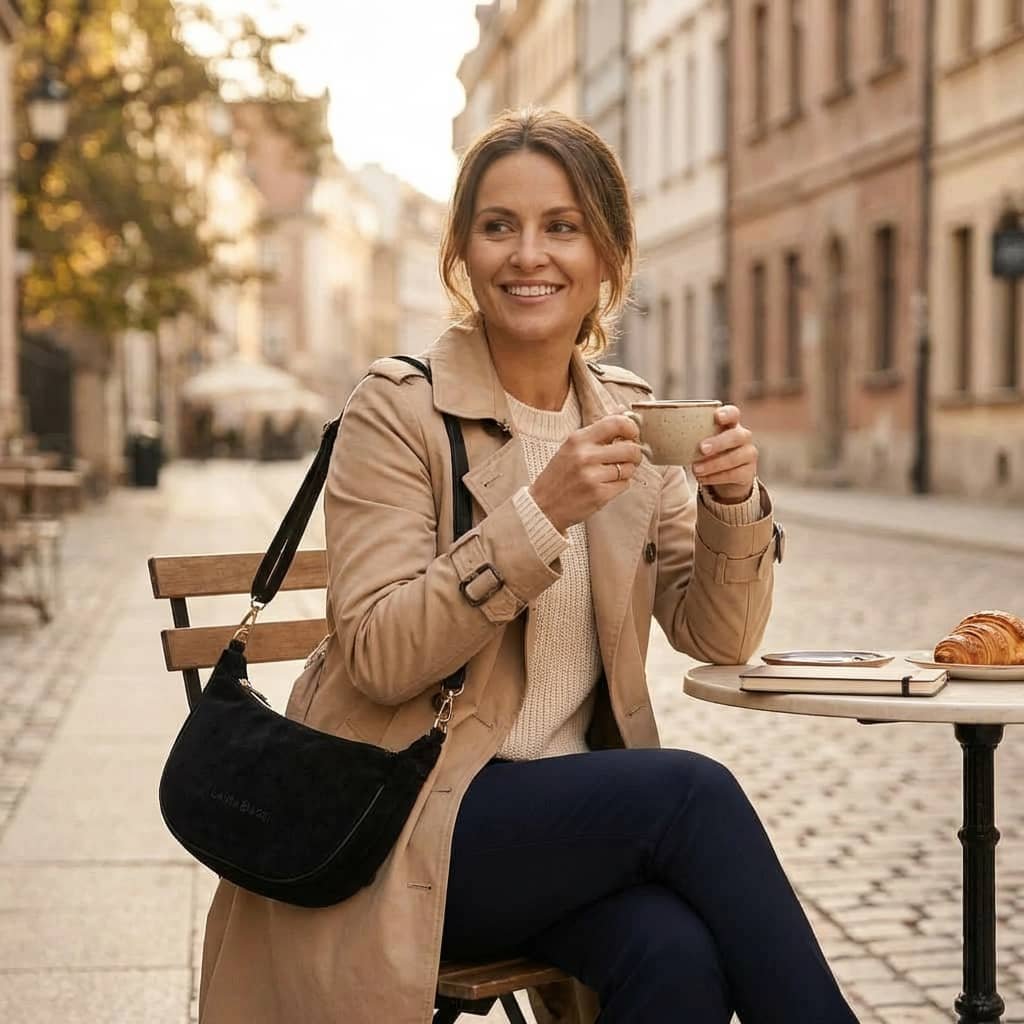 Měkký semišový vzhled dodává kabelce luxusní dojem, zatímco pohodlný popruh umožňuje nošení přes rameno i crossbody. Skvěle doplní městský outfit, kabát i ležérní styl.