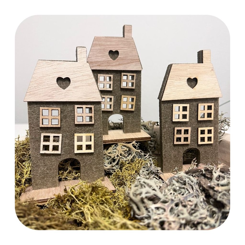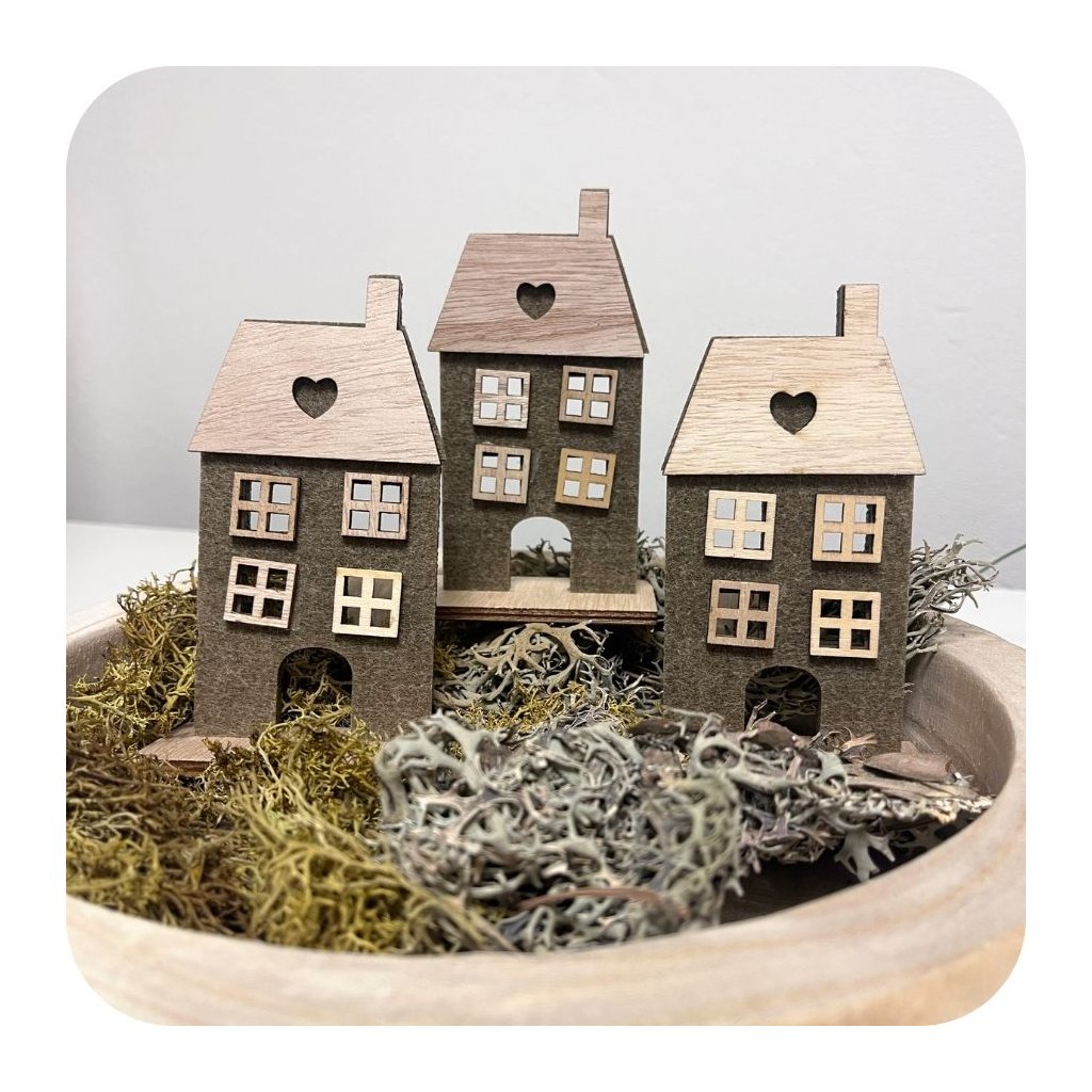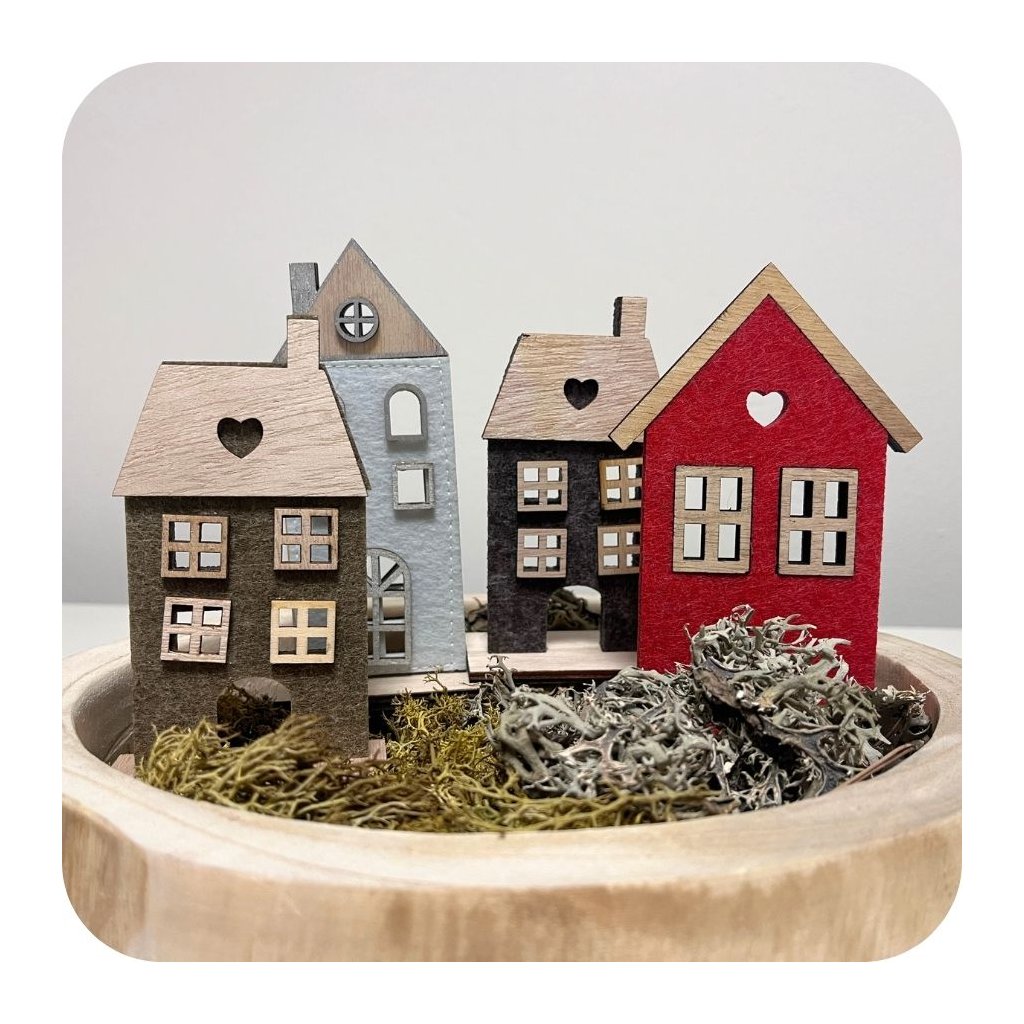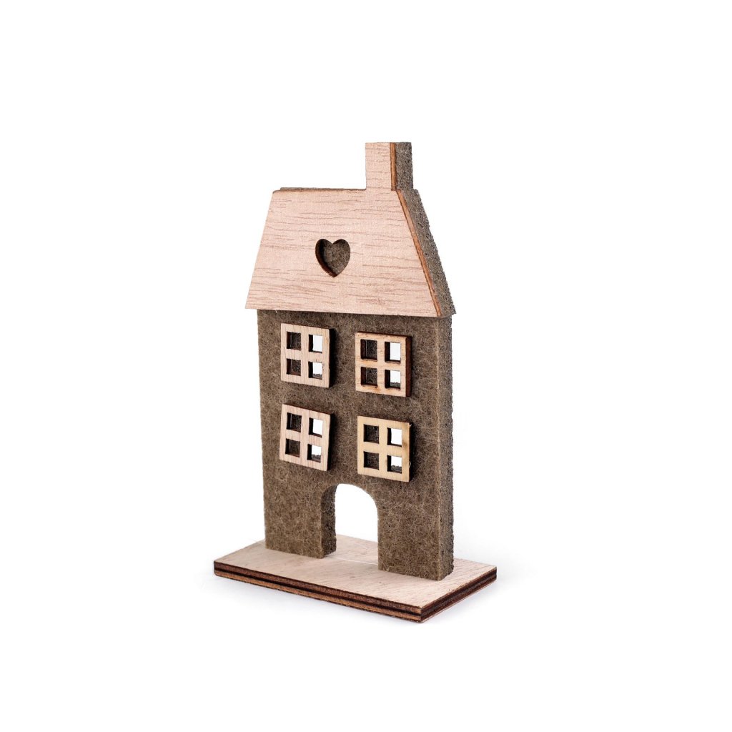 Dekorační domeček můžete postavit na parapet okna, polici nebo třeba krbovou římsu. Stylově doplní různá aranžmá. Materiál je v kombinaci dřeva a filcu.