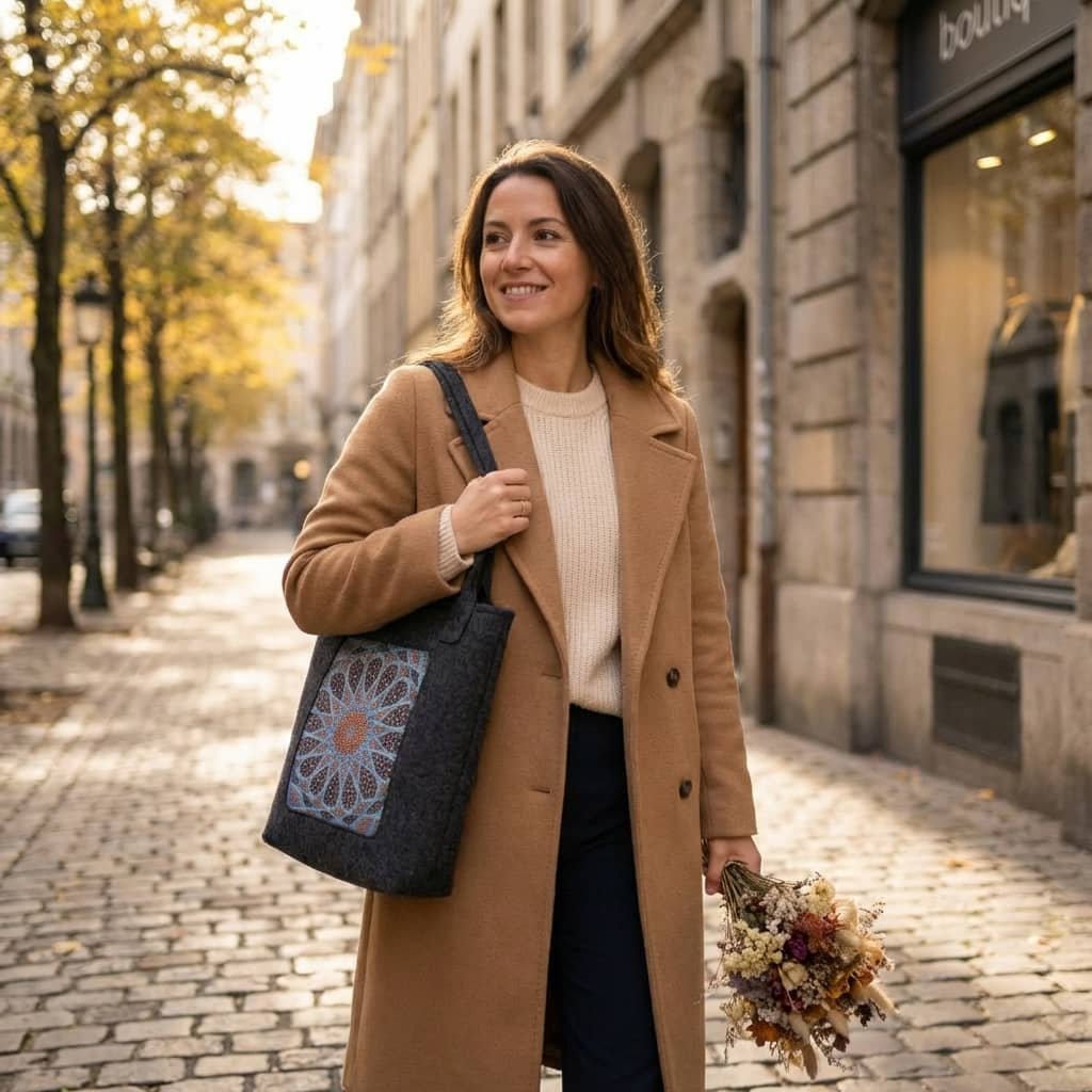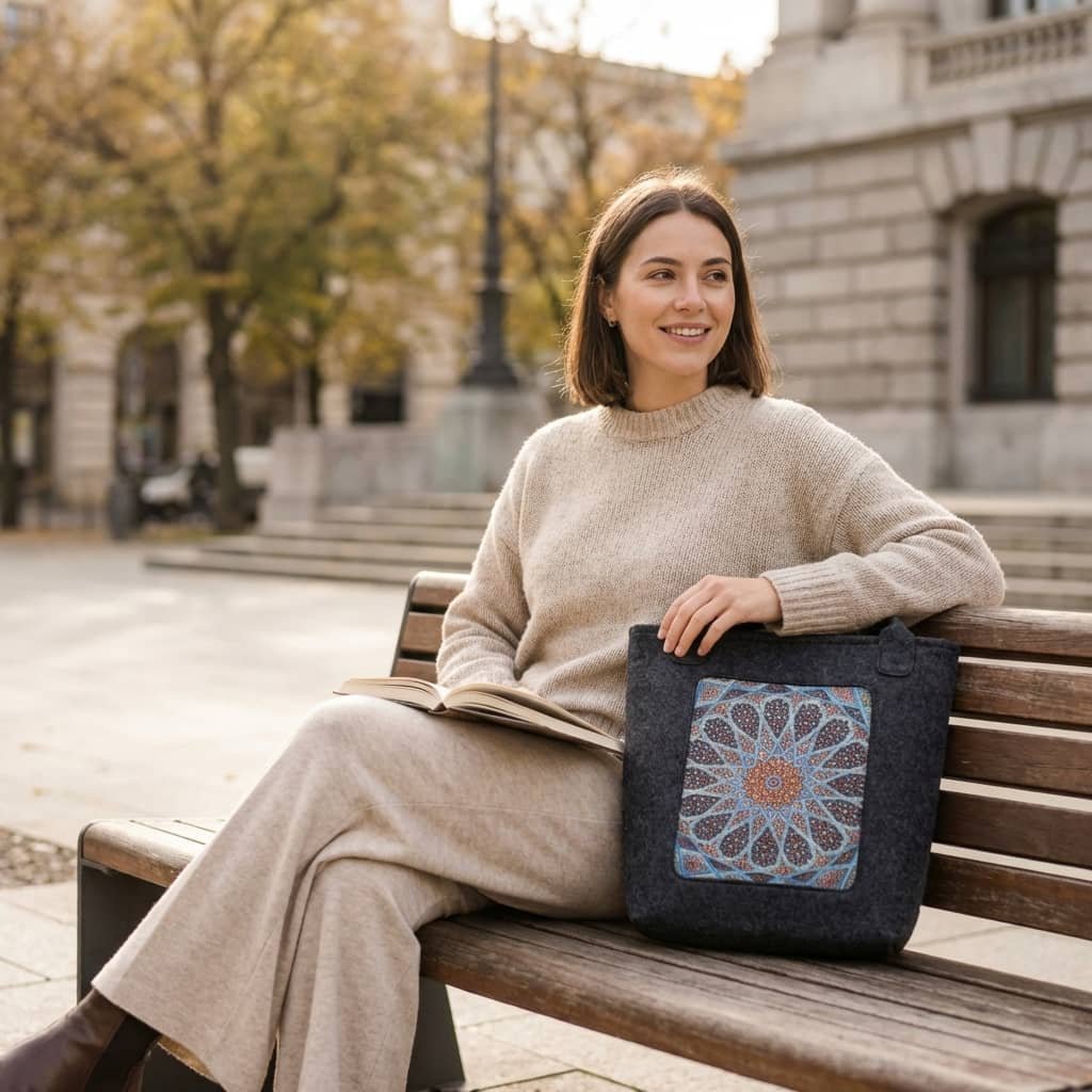 Eco plstěná kabelka BERTONI spojuje minimalistický design s funkčností a šetrností k přírodě.