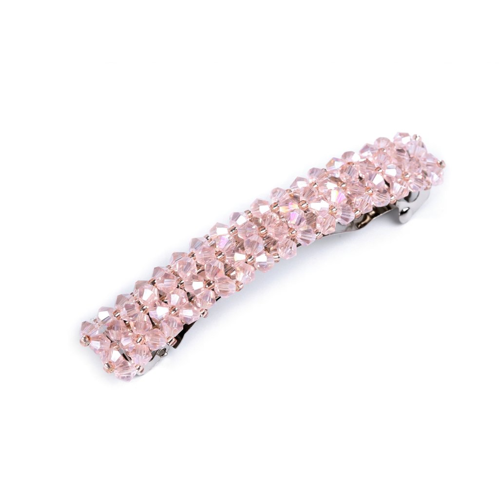 Francouzská spona do vlasů s broušenými korálky - Růžová