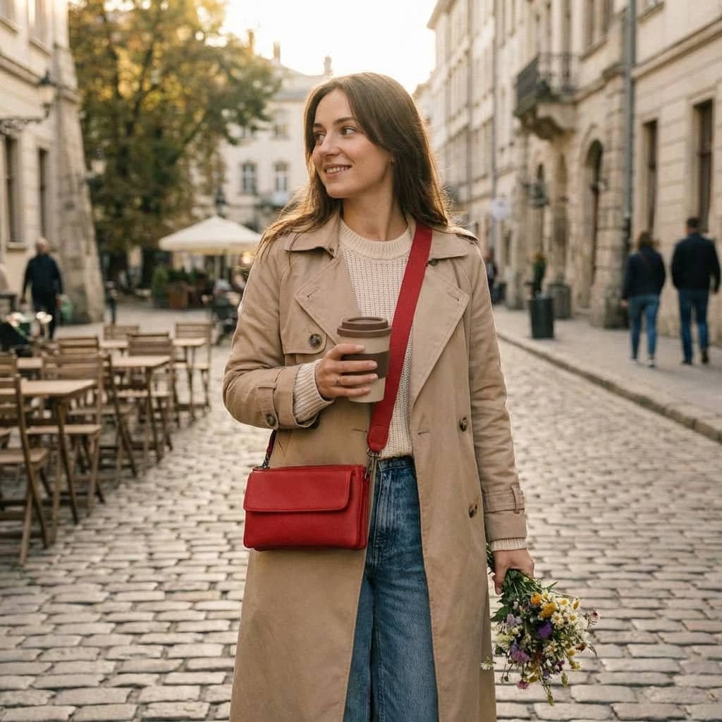 Seznamte se s malou crossbody kabelkou Santiana. Je vyrobená z jemné a měkké syntetické kůže, takže je příjemná na dotek i pohled. Když otevřete zip, objeví se tři praktické kapsy na vaše drobnosti. Ať už potřebujete schovat klíče, rtěnku nebo telefon, vše má své místo. Prostřední kapsička se dá zapnout samostatným zipem pro extra bezpečnost. Díky dlouhému, látkovému a nastavitelnému popruhu můžete kabelku nosit přes rameno nebo do kříže, přesně jak se vám líbí.