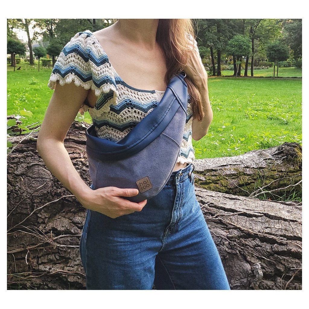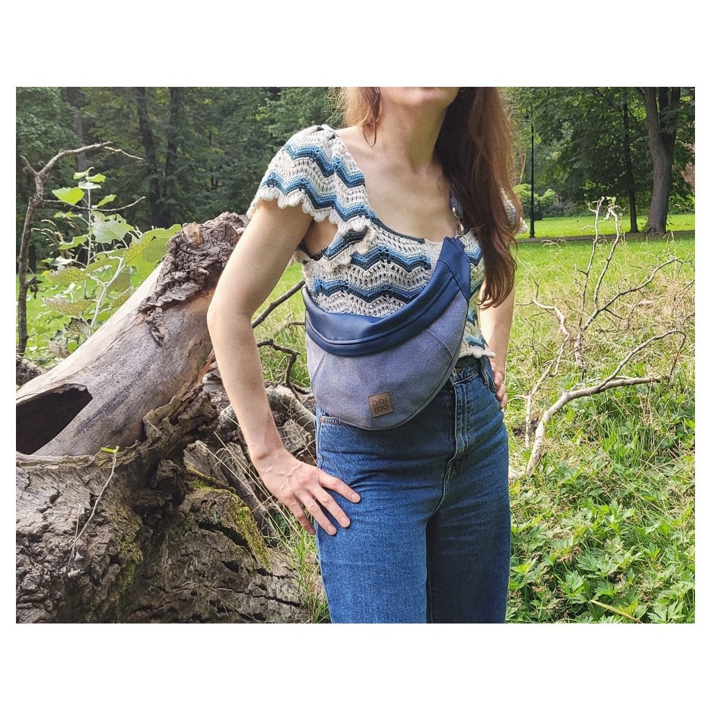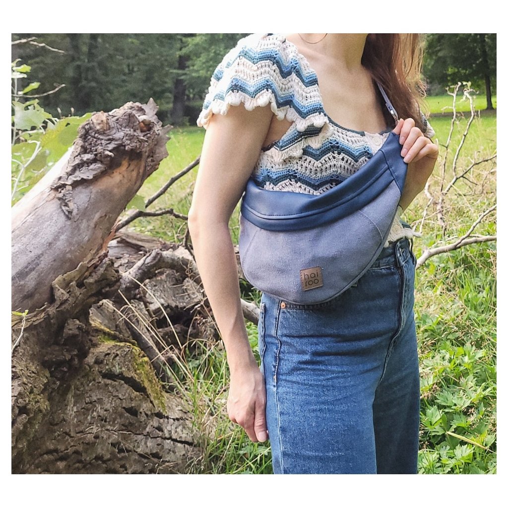 Ledvinky se nosí v pase, přes kyčle nebo dozadu. Je ušitá z eko kůže a hrubé tkaniny. Ručně šitá ledvinka ušitá s ohledem na ekologii a recyklaci. Ideální je na nošení na dovolené, na kole, kolečkových bruslí a u dalších aktivit. Ledvinky jsou také velmi trendy na festivaly a dokonce i do klubu.