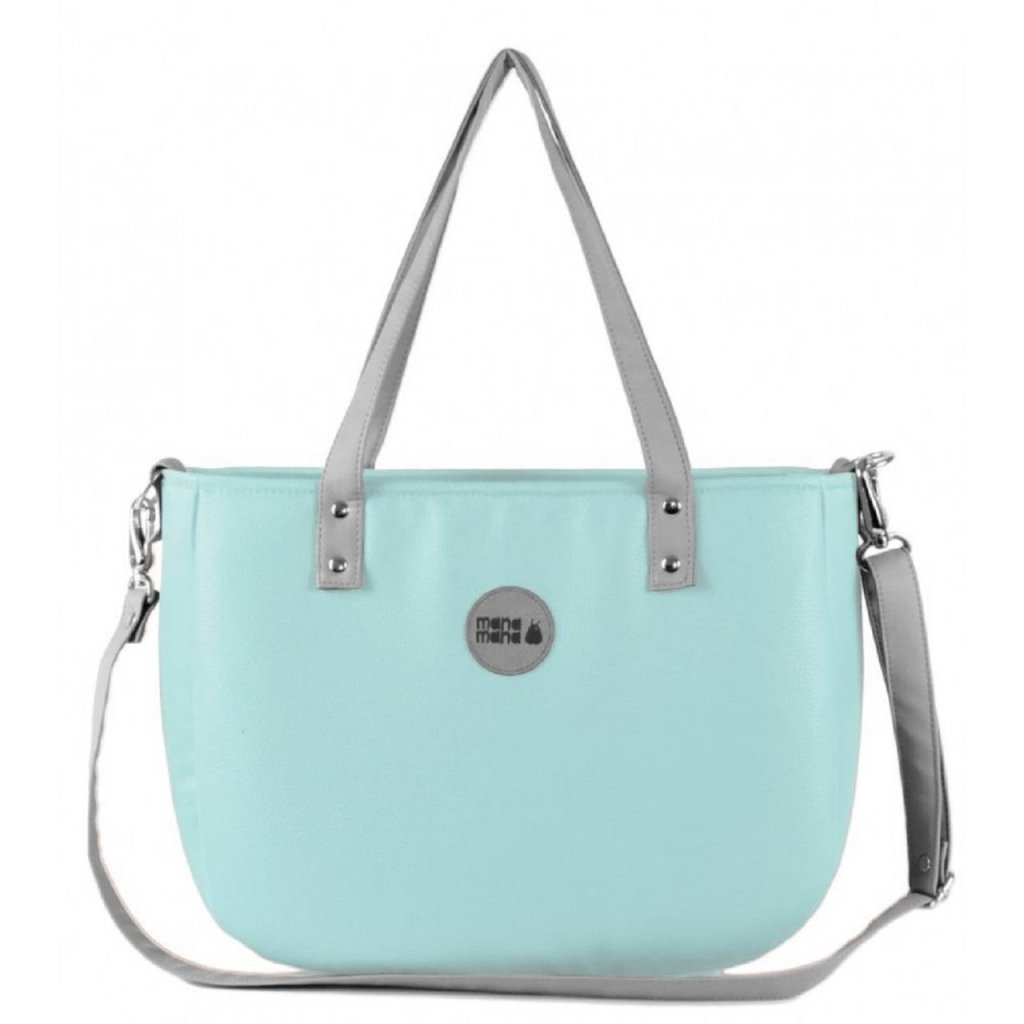Velká kabelka z mátové eko kůže. Tato kabelka pojme obrovské množství věcí, má zaoblené rohy. Uvnitř je silná bavlněná podšívka, a tři kapsy - dvě otevřené a jedna se uzavírá pomocí zipového uzávěru. Taška má robustní uši z eko kůže. Je možné ji nosit volně přes rameno nebo si nastavitelným popruhem ze stejného materiálu upravit tašku pro nošení diagonálně (crossbody).