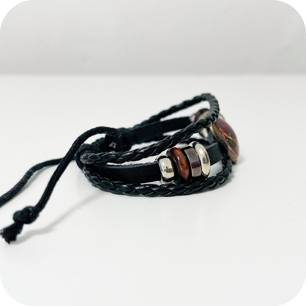 Složení: eko kůže, dřevo, bižuterní kov s galvanizací