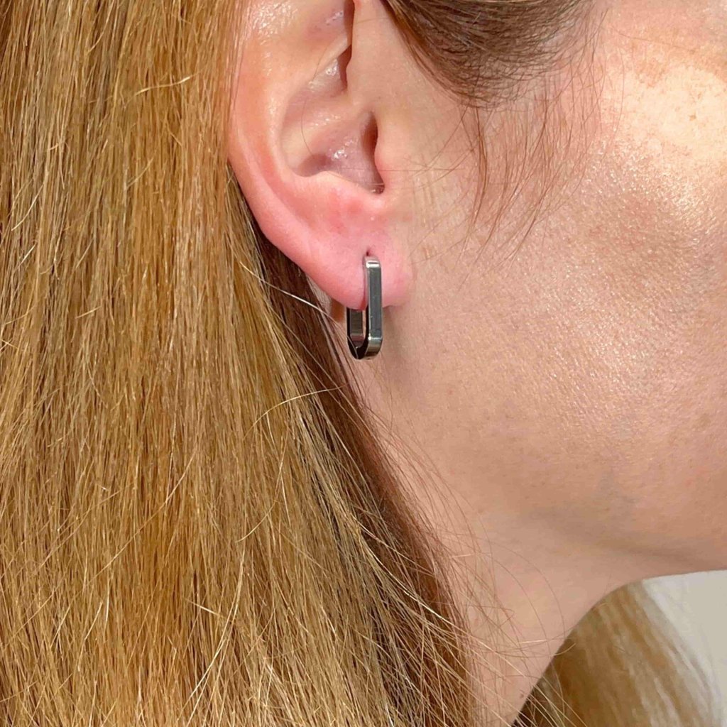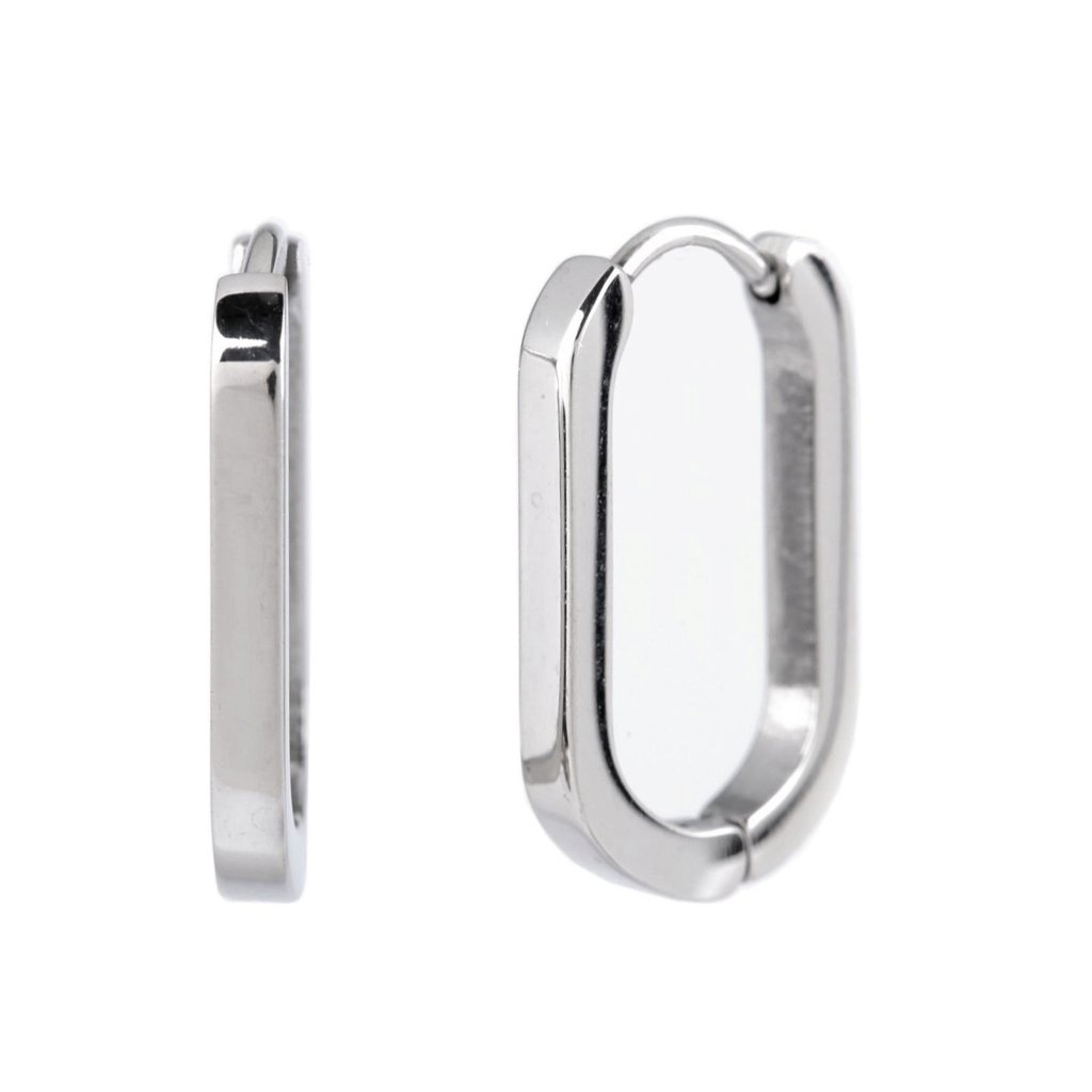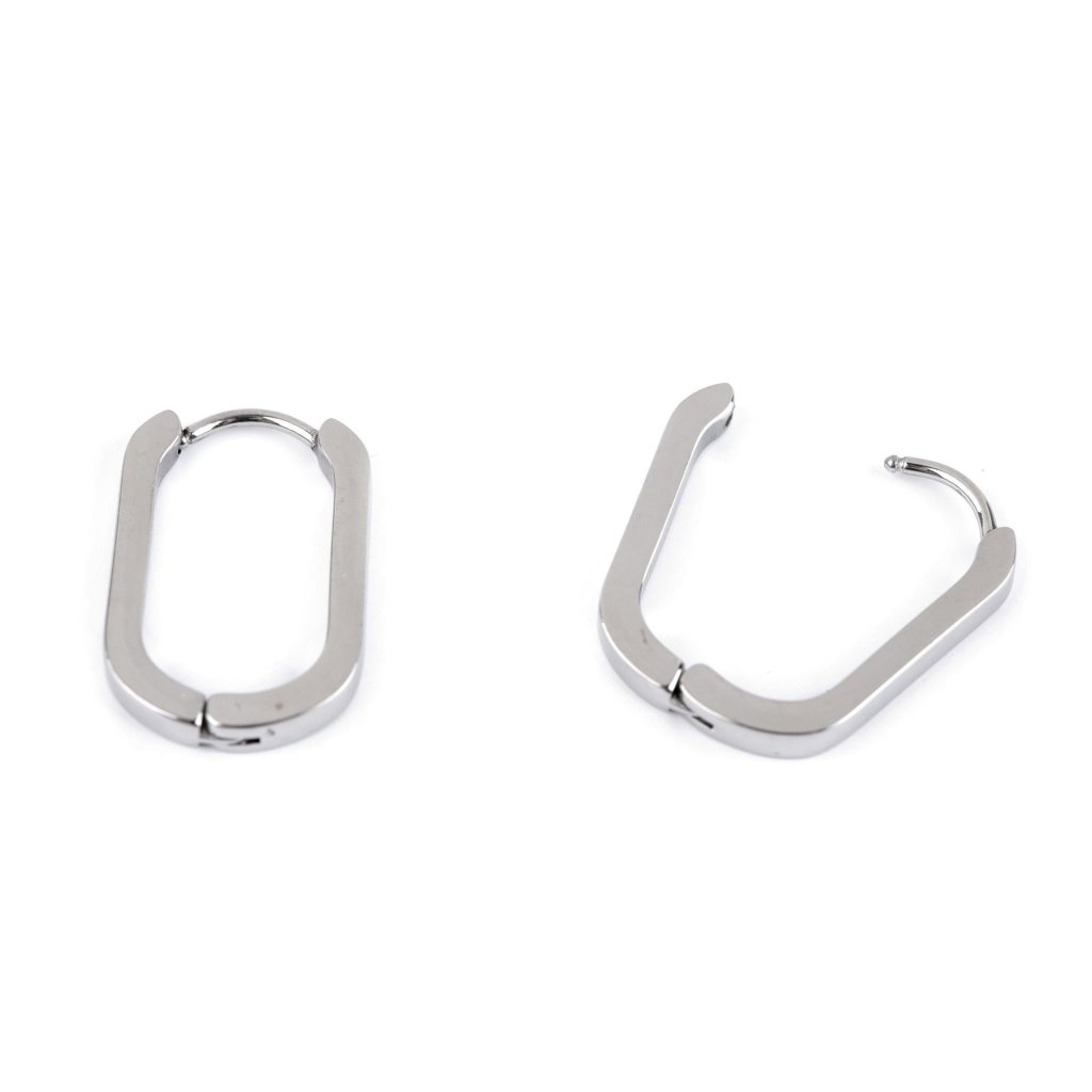 Elegantní náušnice mají moderní oválný tvar s rovnými stranami. Jsou vyrobené z kvalitní nerezové oceli. Jsou hladké, mají vysoký lesk. Hodí se k jakémukoliv outfitu, oblíbíte si je na každodenní nošení.