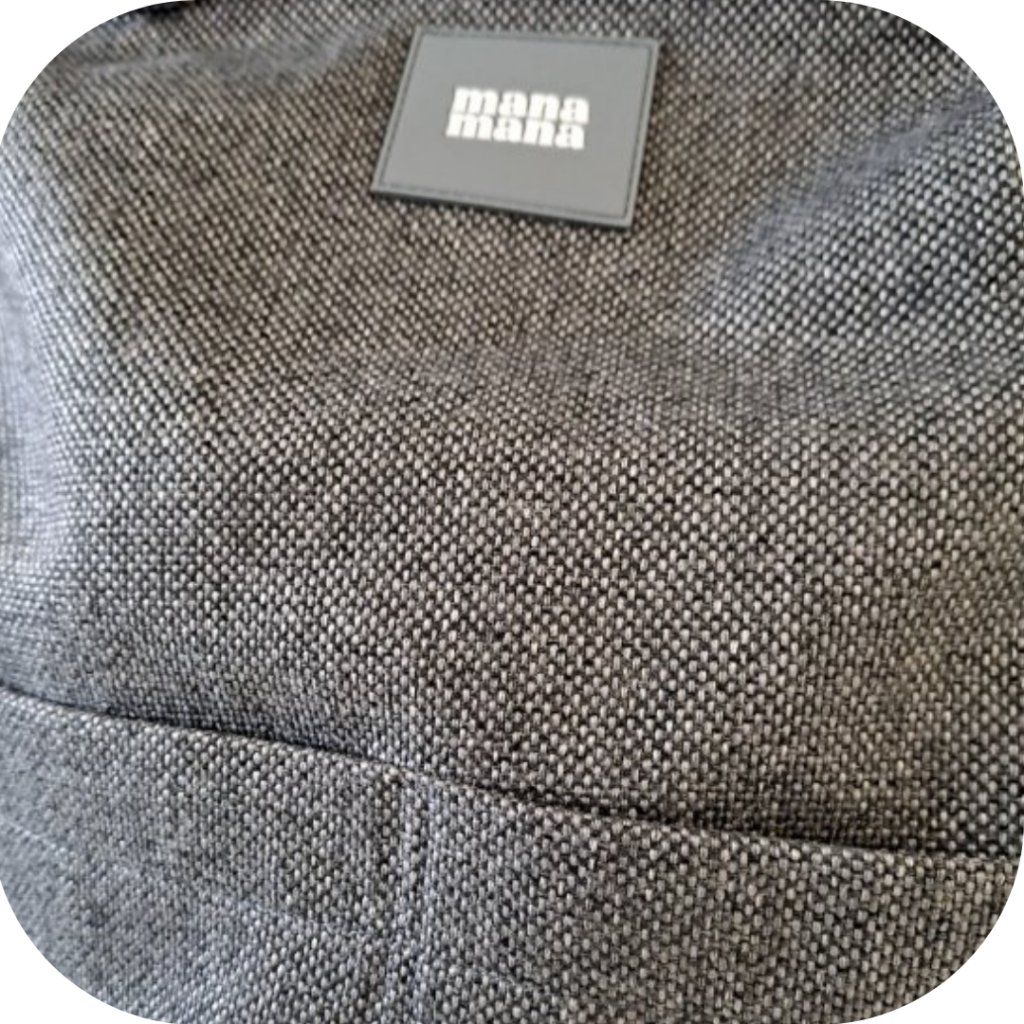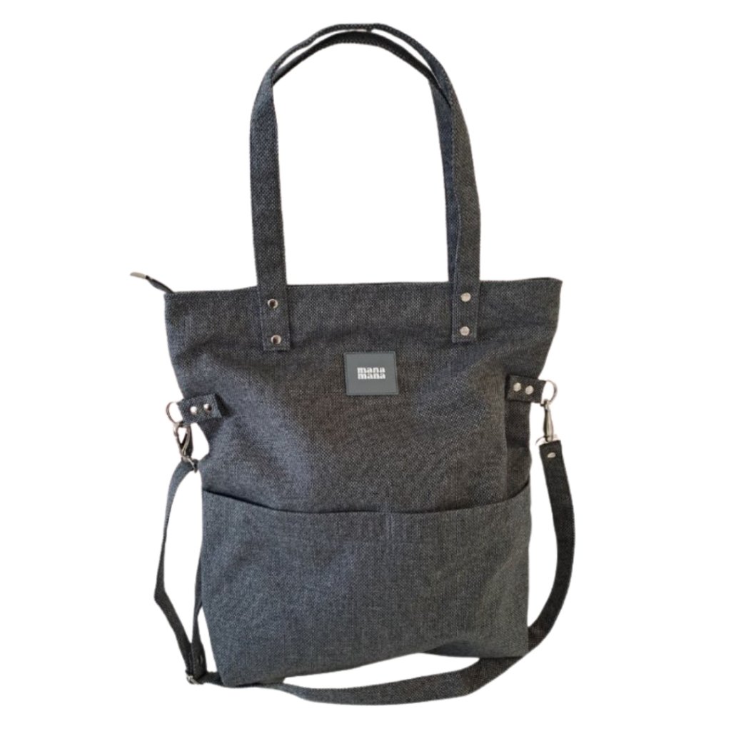 Vyrobená z hrubé tkaniny v tmavě šedé barvě.