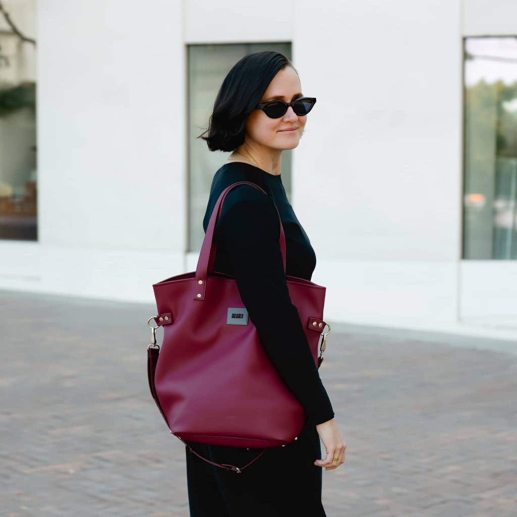 Pevný popruh a čtyři nýty (uši) ze stejného materiálu zajišťují nejen stabilitu, ale i pohodlí při nošení. Tašku můžete nosit volně přes rameno nebo si ji upravit pro nošení diagonálně (crossbody), což vám umožní mít volné ruce a pohodlí během celého dne.