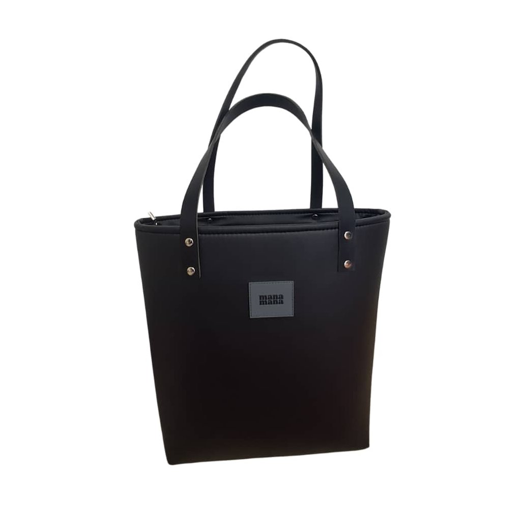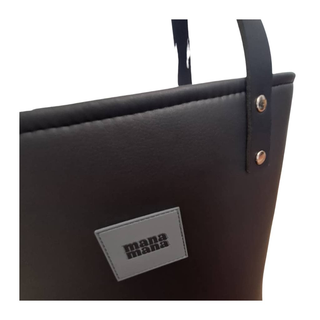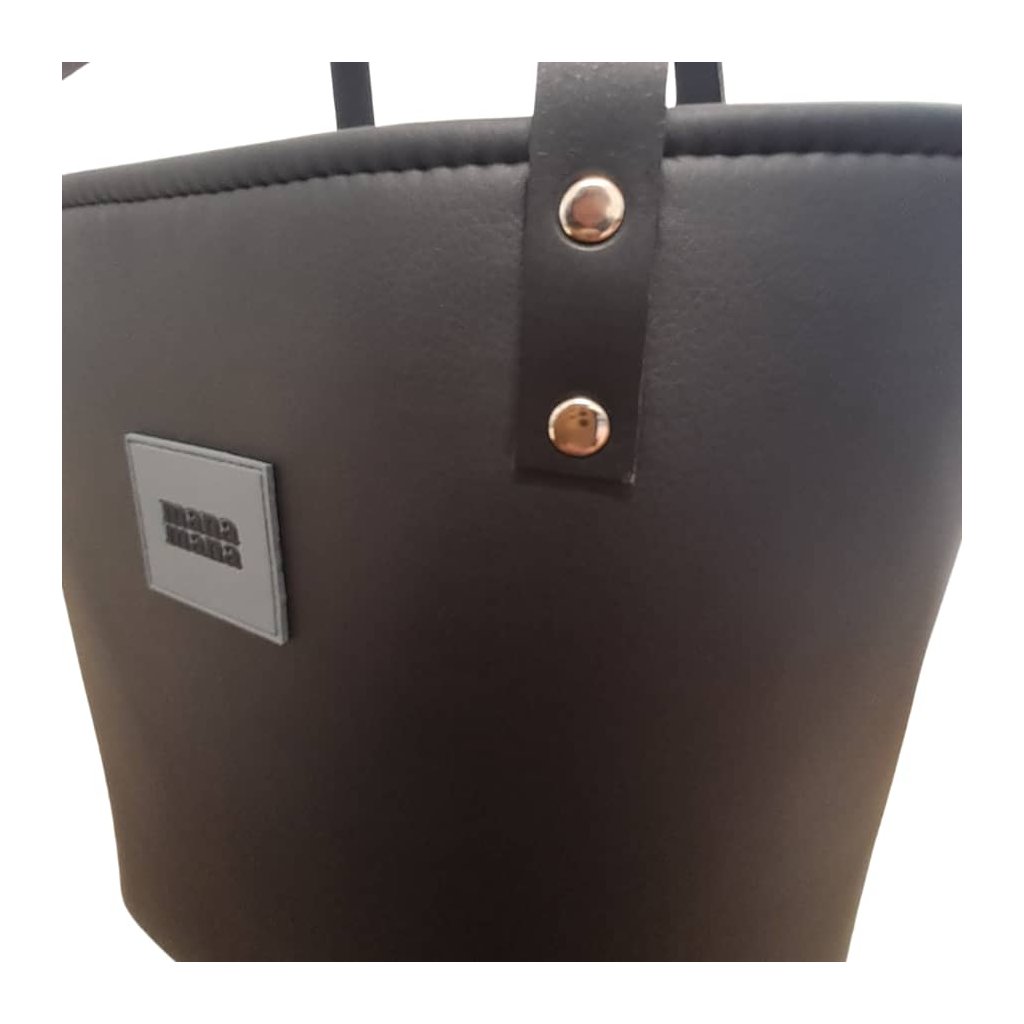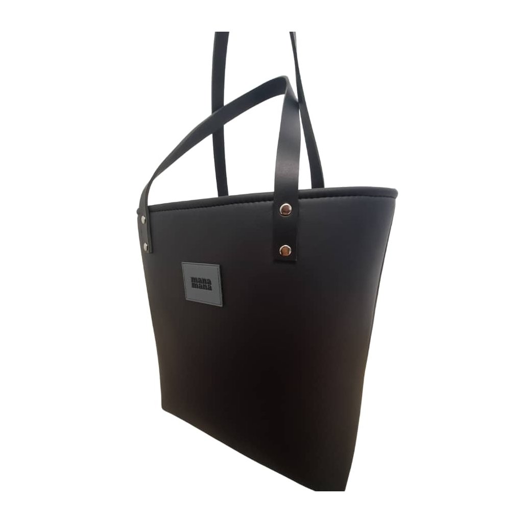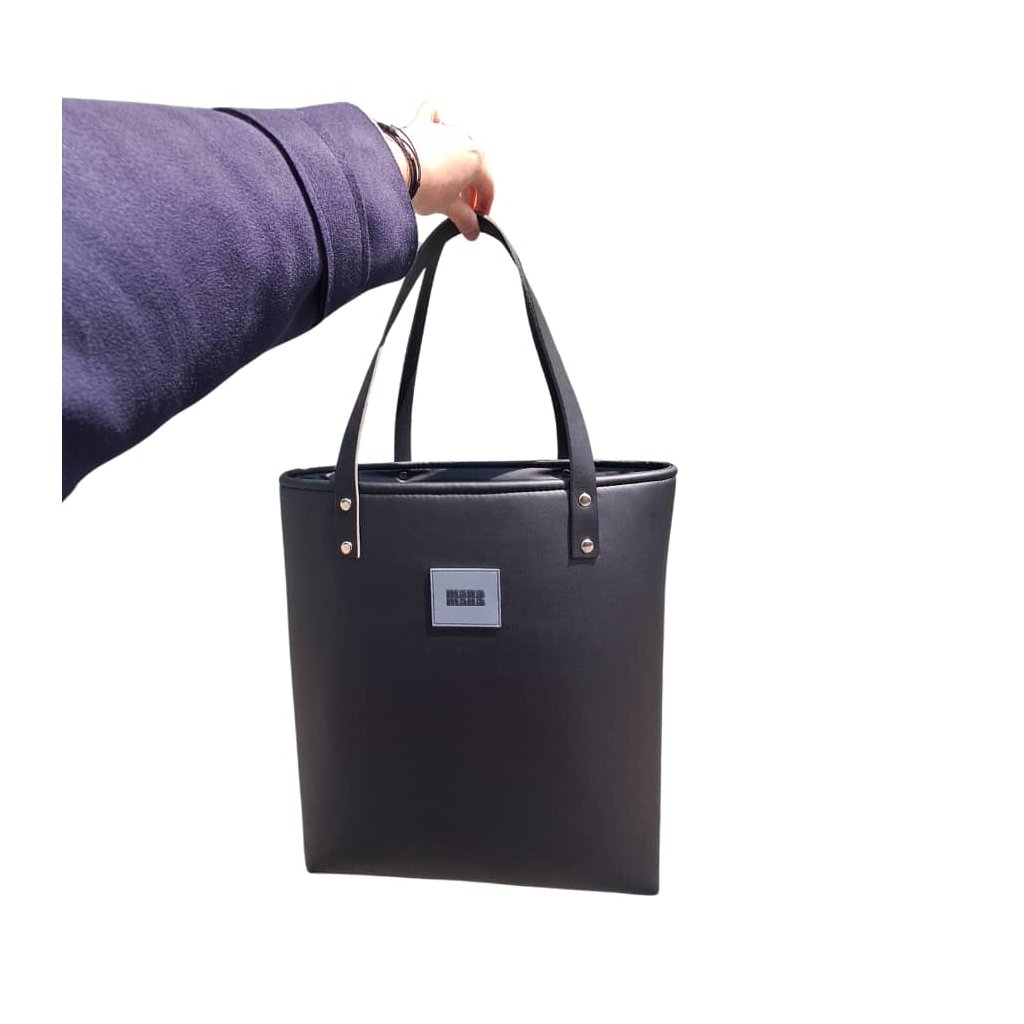 Velká módní taška vyrobená z eko kůže v barvě černé. Uvnitř je silná bavlněná podšívka, a tři kapsy - dvě otevřené a jedna se uzavírá pomocí zipového uzávěru. Je přidělána na čtyřech nýtech (uších) z hrubé tkaniny. Je možné ji nosit volně přes rameno. Je měkká, pojme neuvěřitelné množství věcí a skvělá pro každodenní nošení do práce nebo školy. Taška pojme objem do 3kg (pro každodenní nošení), čas od času se může také přetížit na 5-6kilovou zátěž.